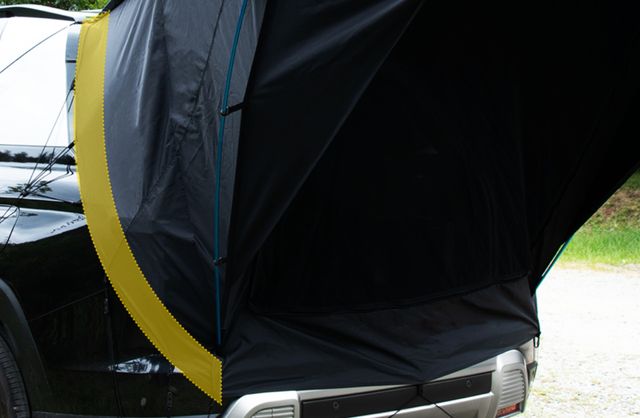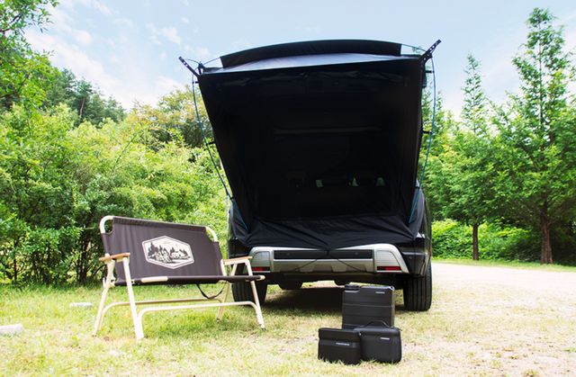 먼저 차박의 분위기를 만들어 주는 텐트의 경우, 순정용품 쇼핑몰에서 구매 시 루프탑 형태가 아닌 테일게이트 부분에 설치하고 접어서 보관하는 방식의 제품(41만8,000원)으로만 제공된다.