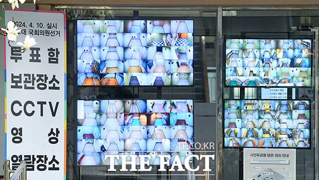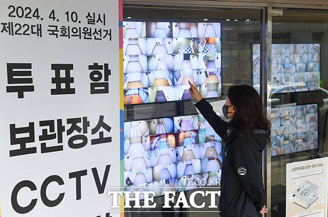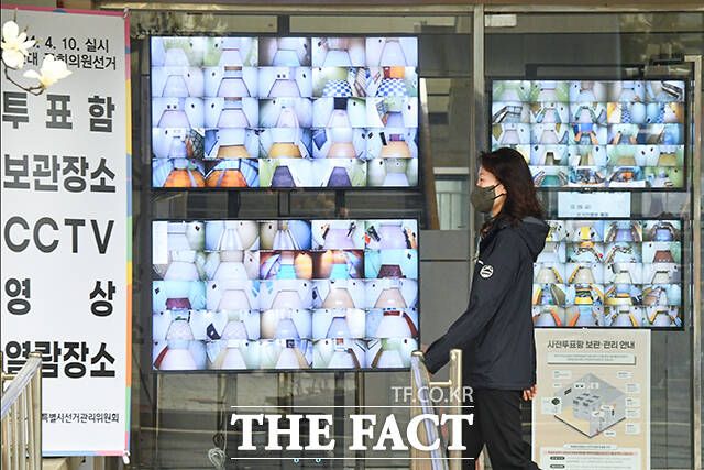 [더팩트ㅣ장윤석 기자] 4·10 총선을 12일 앞둔 29일 서울 종로구 서울시선거관리위원회에 우편 투표함과 사전 투표함 등의 보관 장소를 확인할 수 있는 CCTV가 송출되고 있다.