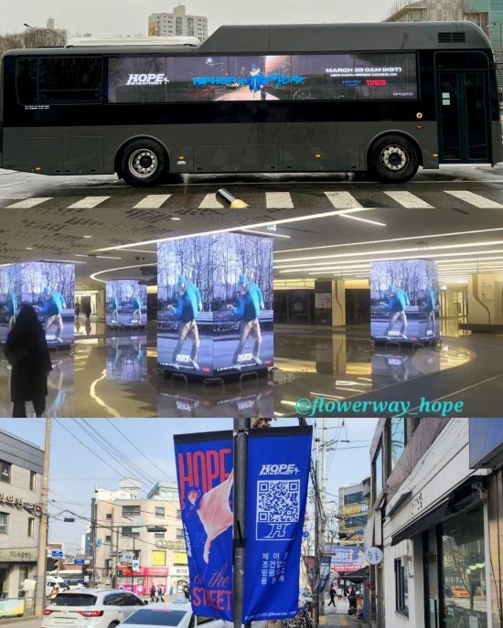 이에 한국의 팬클럽 '정호석 꽃길 조성단'은 서울 곳곳에서 홍보 서포트를 진행했다.
