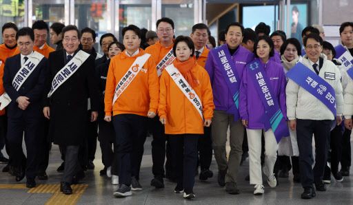 지난 2월 9일 제3지대 정당들이 모여 합동으로 서울역 인사를 할 때 모습 (사진=뉴시스)