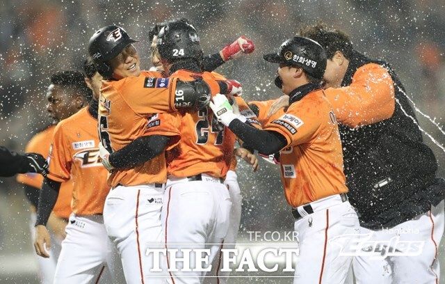 프로야구 한화는 29일 대전한화생명이글스파크에서 열린 '2024 신한 SOL뱅크 KBO리그' kt 위즈와 홈개막전에서 9회 말 짜릿한 3-2 끝내기 승리를 거뒀다. 지난 23일 잠실에서 열린 LG 트윈스와 홈개막전 2-8 패배 이후 거침없는 5연승을 달렸다. 비록 선발 투수 류현진이 퀄리티 스타트 피칭을 하고도 승리를 챙기지 못한 건 아쉽지만 연승 분위기를 이어갔다는 점에서 모처럼 경기장을 찾은 김승연 한화그룹 회장도 '엄지 척'을 날렸다.