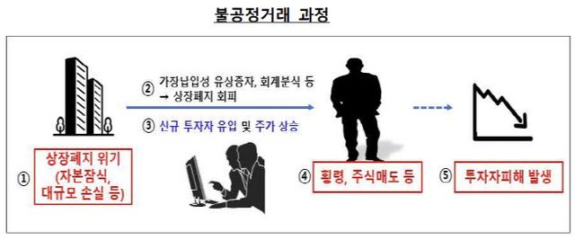 △대표적인 2가지 사례를 말씀 드리겠습니다. 첫째는 주가를 인위적으로 끌어올린 뒤 전환사채(CB)를 통해 수십억원을 조달한 사례가 적발됐습니다. A사 사주는 A사 주가가 계속 떨어지고, 저축은행에 담보로 제공한 주식이 반대매매 위기에 처하자 사채업자이자 시세조종 전문가에게 시세조종 즉 주가조작을 지시했습니다. 사채업자는 지인 등 12명의 계좌를 동원해 주가를 인위적으로 띄웠습니다. 이후 A사는 이후 CB와 신주인수권부사채(BW) 발행을 통해 73억원을 조달했습니다. 하지만 경영상황이 호전되지 않아 10개월 만에 상장폐지 실질심사 대상으로 결정됐고 결국 상장폐지됐습니다.