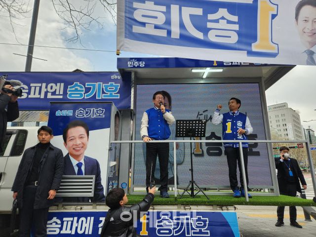 이 대표는 이날 선거유세 첫 일정으로 송기호 예비후보 지지연설을 하기 위해 서울 송파구의 석촌호수를 찾았다.