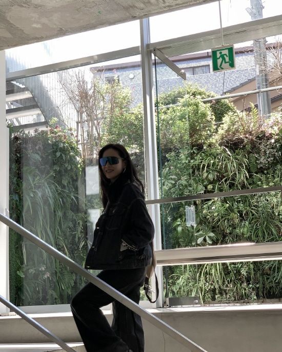 사진 속 손예진은 블랙 컬러의 재킷과 바지 등 편안한 옷차림을 하고 건물 안의 계단을 올라가고 있다.