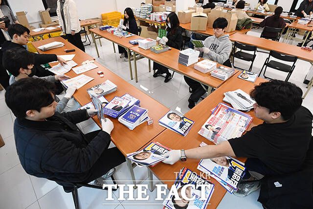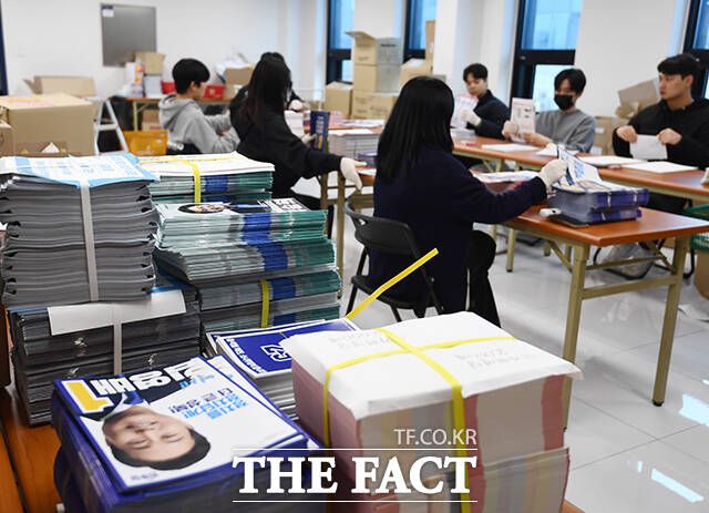 [더팩트ㅣ장윤석 기자] 4·10 총선을 열하루 앞둔 30일 오전 서울 성북구 선거관리위원회에서 관계자들이 국회의원 후보자들의 투표 안내문 발송 작업을 하고 있다.