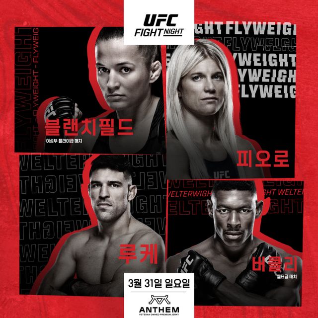 ‘UFC 파이트 나이트: 블랜치필드 vs 피오로’ 메인카드는 오는 3월 31일(일) 오전 11시부터 tvN SPORTS와 티빙(TVING)을 통해 생중계된다.