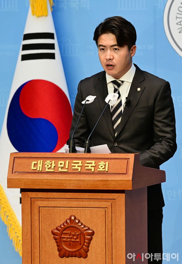아시아투데이 이병화 기자 = 오영환 새로운미래 총괄선대위원장이 31일 국회 소통관에서 선대위 긴급 기자회견을 하고 있다. 오 위원장은 이날 조국혁신당, 더불어민주당, 국민의힘은 '전관비리', '부동산 특혜', '아빠찬스 특혜' 후보들에 대한 공천을 즉각 취소하고 대국민 사과할 것을 촉구했다.