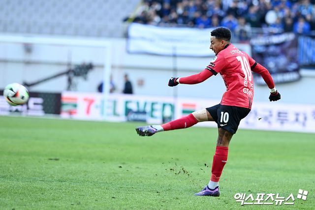 그러나 득점 기회는 허공으로 날렸다. 후반 막판 강성진이 오른쪽 측면을 돌파한 후 린가드에게 패스를 내줬으나 린가드의 슛은 골문 위를 크게 넘어갔다. 슈팅 직후 린가드는 야속한 표정으로 잔디를 바라봤다. 아직 K리그 잔디에 적응하지 못한 모습이었다.