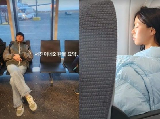 공개된 사진에는 박서준이 피곤한 듯 공항으로 보이는 곳에서 눕듯이 앉아 눈을 감고 있다.