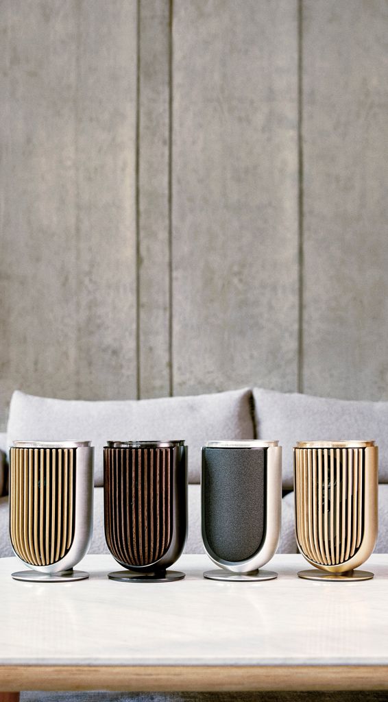 다양한 스피커 색상과 커버 소재로 조합한베오랩 8 테이블 스탠드.