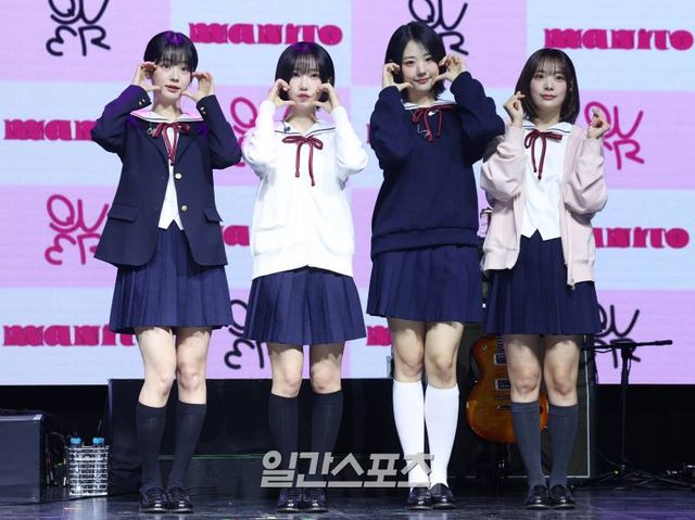 1일 서울 서대문구 예스24 원더로크홀에서 QWER(쵸단, 마젠타, 히나, 시연) 미니 1집 ‘마니또’(MANITO) 컴백 쇼케이스가 개최됐다. 지난해 10월 첫 싱글 타이틀 ‘디스코드’ 발매 이후 약 6개월 만 신보다.