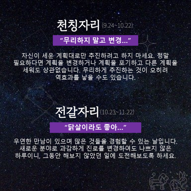 Δ 천칭자리 : 무리하지 말고 변경…