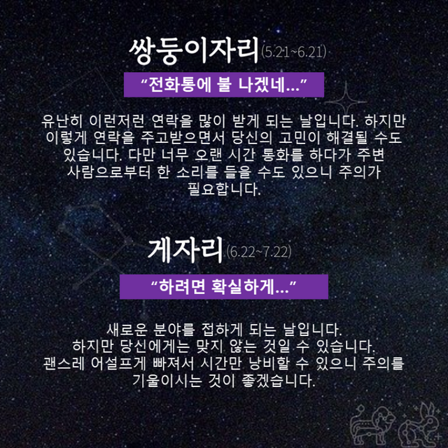 Δ 쌍둥이자리 : 전화통에 불 나겠네…