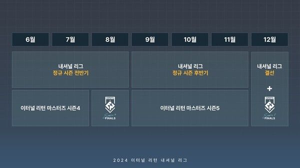 ‘이터널 리턴 내셔널 리그’는 오는 6월부터 진행되는 ‘이터널 리턴 시즌 4’와 9월부터 진행되는 시즌 5 기간에 걸쳐 약 6개월간 진행되며, 8주간 16회 정규 시즌 경기와 1회의 결선 경기로 구성된다. 결선 경기는 올해 12월 중 대전 이스포츠 경기장에서 진행될 예정이다.
