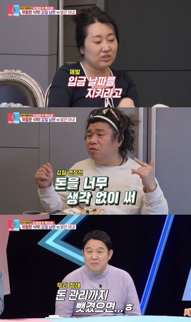 이를 지켜보던 스튜디오 MC들은 "전체적인 돈 관리는 정태씨가 하고, 생활비는 아내에게 주는 거냐"고 말했다.
