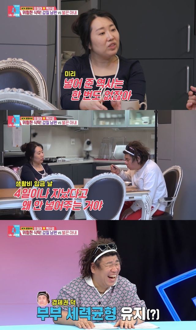 이어 "집에 오면 '조용히 해' 라며 구박만 받다가, 생활비 줄 때만 나한테 잘하지 않냐"라고 토로했고 백아영은 "갑질이네"라고 받아쳐 웃음을 자아냈다.