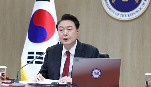 윤 대통령은 국무회의에 앞서 북한의 미사일 도발에 대해 "북한 정권은 미사일을 비롯한 군사 도발을 계속하면서 총선을 앞두고 우리 사회를 흔들려 하고 있다"며 "이러한 도발은 우리 국민들의 마음을 더 단단히 하나로 묶을 뿐"이라고 했다. ⓒ 연합뉴스