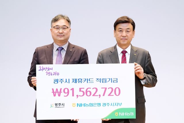 [파이낸셜경제=김영란 기자] NH농협은행 광주시지부는 지난 1일 광주시 직원 월례회의에서 지난 한 해 동안 광주시민, 공직자 등이 적립한 제휴카드 적립금 9천156만2천720원을 광주시에 전달했다.