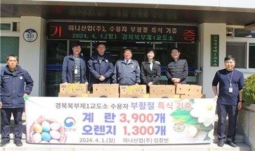 이번 기증 행사는 부활절을 맞이하여 수용자들의 심적 안정을 도모하기 위해 이루어진 것으로, 4월 1일 임창빈(하나산업 대표, 김해시온교회 집사)로부터 구운계란 3,900개, 오렌지 1,300개를 기증받아 전 수용자에게 지급했다.