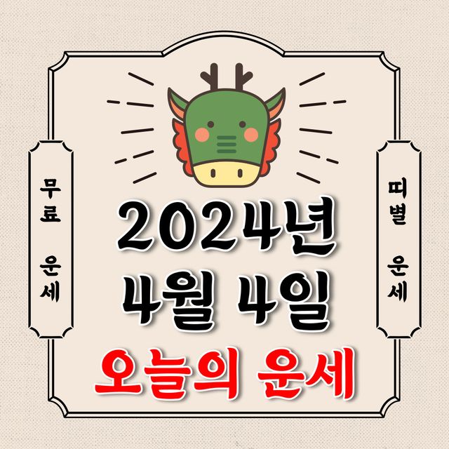 오늘의 운세 2024년 4월 4일 목요일 (음력 2월 26일 / 띠별 운세 / 생년월일 운세)에 대해 알아 보겠습니다.