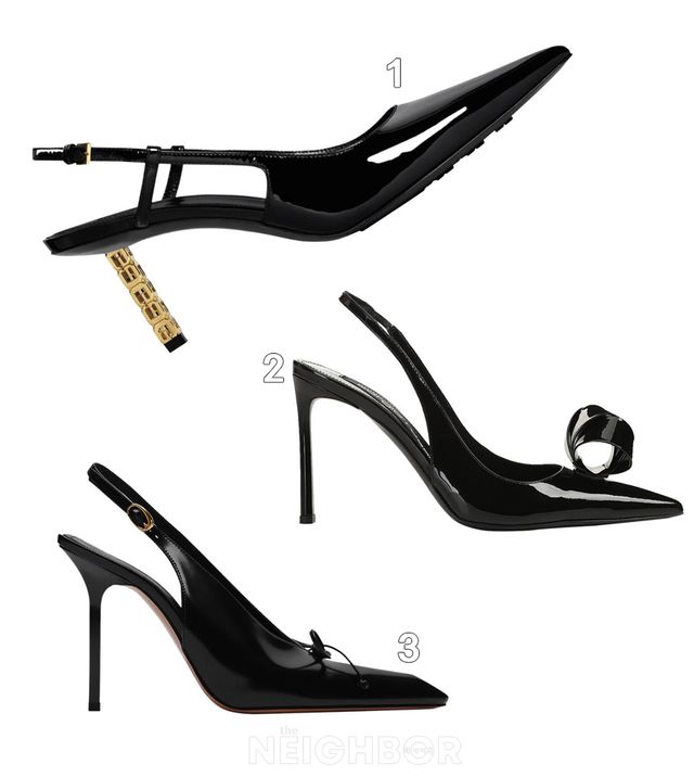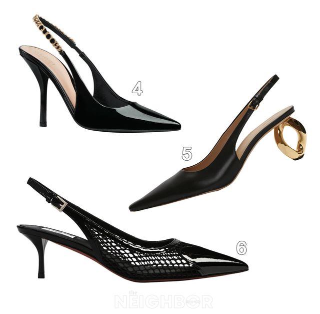 6 AlaÏa 앞코에 페이턴트 가죽을 덧대 날렵한 실루엣을 강조한 메시 소재 슬링백 가격 미정.
