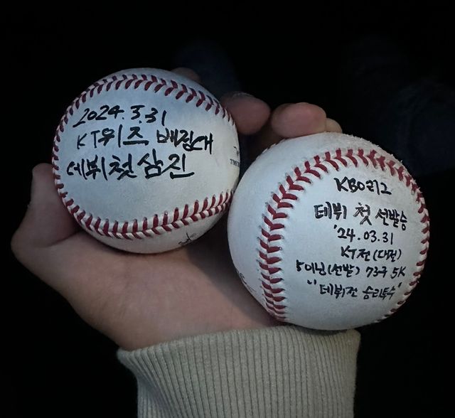 (엑스포츠뉴스 대전, 조은혜 기자) 이런 신인이 있었을까. 한화 이글스의 '리틀 몬스터' 황준서의 데뷔 첫 기념구를 위해 '코리안 몬스터' 류현진이 직접 펜을 들었다.