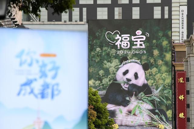 上图为3日在成都春熙路步行街上拍摄的大熊猫“福宝”应援屏幕.
