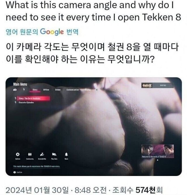 메인 메뉴 배경에 남자 캐릭터 근육 클로즈업 되서 나옴