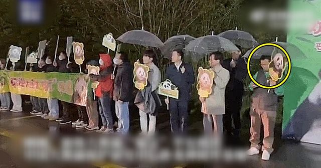 선수핑 기지 앞에서는 중국으로 돌아온 푸바오를 위한 간단한 환영식이 열렸다. 우산을 쓴 채 인파들 틈에 서 있던 강철원 사육사는 푸바오를 태운 트럭이 보이자 바로 휴대폰을 꺼내 들었다. 강 사육사는 트럭이 기지 안으로 들어가는 뒷모습까지 촬영하며 기록으로 남겼다.