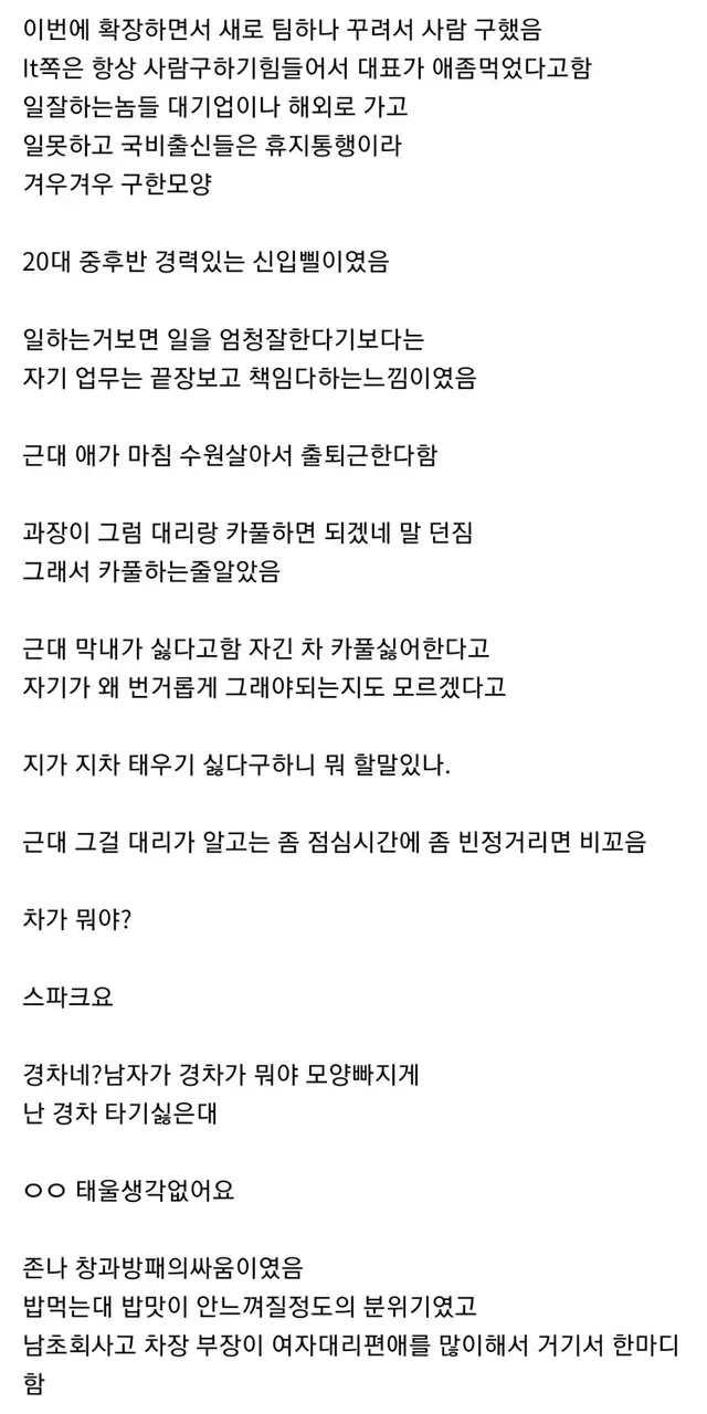 나도 여자 선임이랑 카풀해봤는데