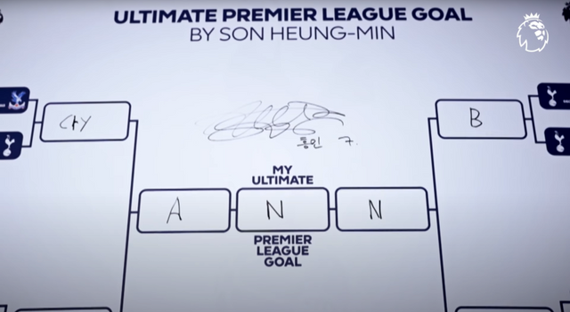 EPL은 토트넘 팬들이 뽑은 최고의 8골 장면에 대한 자체 월드컵을 실시했다. 8개의 득점 장면을 두고, 손흥민이 생각하는 최고의 득점 장면을 뽑게 한 것이다.