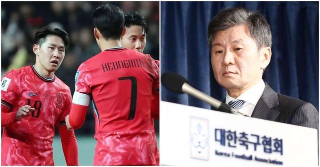 (왼쪽)대한민국 축구 대표팀 이강인, 손흥민. (오른쪽)정몽규 대한축구협회 회장. / 뉴스1