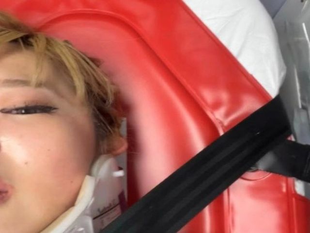코바시 마리카가 부상당한 후 실려가며 찍은 셀카. 코바시 마리카 엑스.