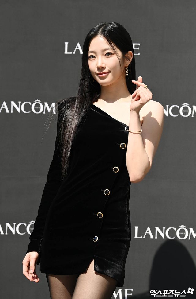 이날 행사에 참석한 르세라핌 카즈하가 포토타임을 갖고 있다.