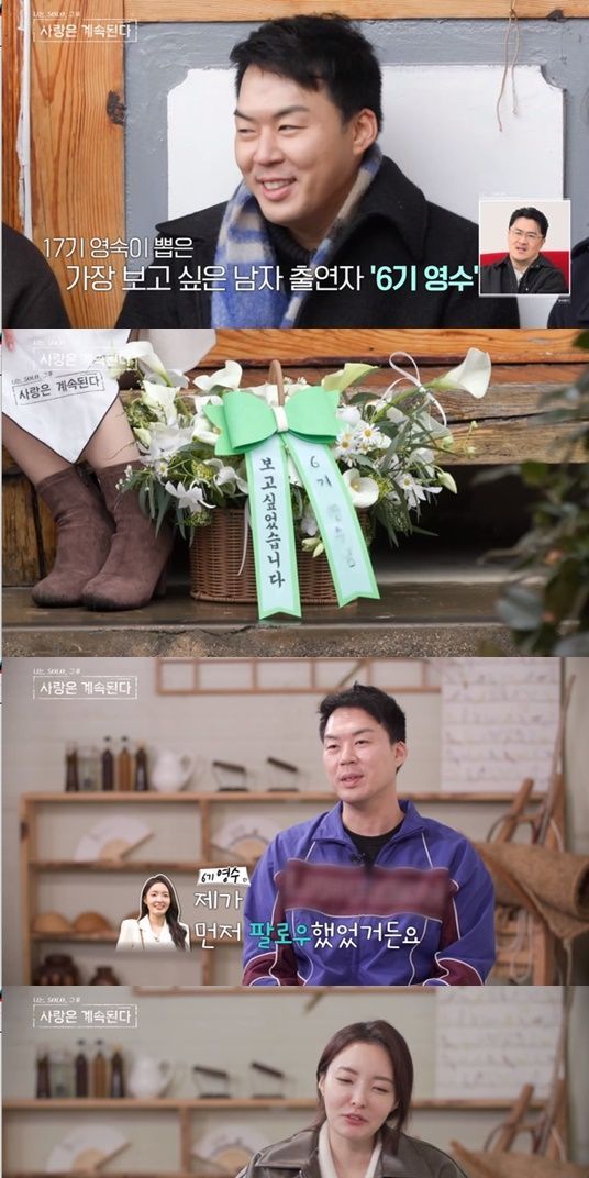 '나솔사계' 첫 회에서 17기 영숙은 가장 보고 싶은 출연자로 6기 영수를 꼽은 바 있다.