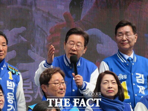 의석 수 전망에 대해 이 대표는 "약 50~60개 지역구가 접전지로 분류되고 있는 것으로 아는데 공감한다"며 "향배에 따라 민주당이 과반 의석을 놓치는 상황도 있을 것 같다는 위기감도 있다"고 말했다.
