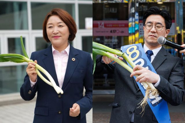 대구 수성을에 출마하는 오준호 새진보연합 후보도 이날 사전투표를 마치고 ‘대파 퍼포먼스’를 진행했다. 오 후보는 “제가 직접 산 대파 가격이 한 단에 2700원이었다. 윤석열 대통령이 말하는 ‘대파 한 단의 합리적 가격’인 875원 어치는 두 뿌리도 채 되지 않는다”며 대파를 자르는 퍼포먼스를 했다.