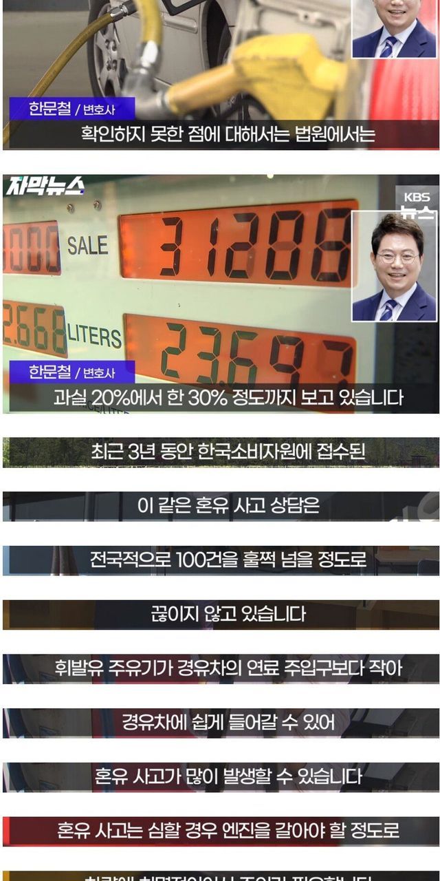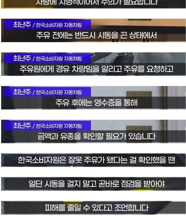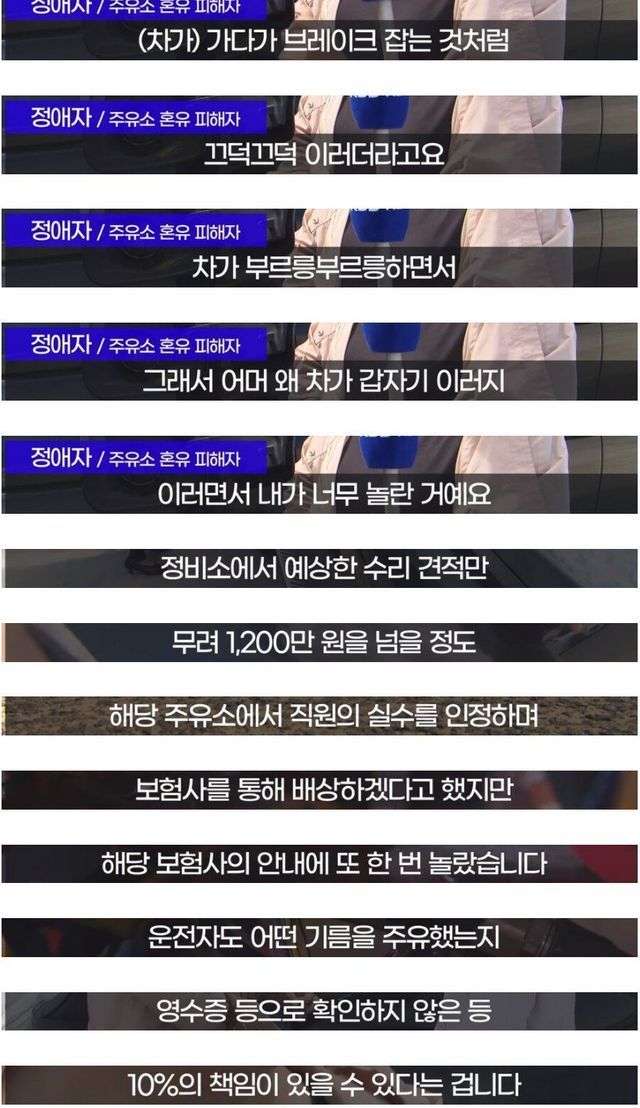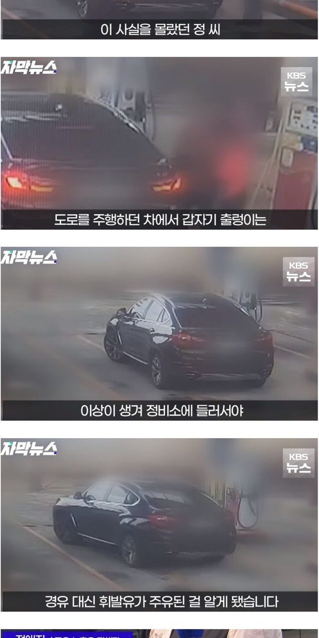 출발했는데 차가 이상해서 보니 직원이 기름 잘못 넣은걸 알게됨 수리비만 천만원 넘게 나옴