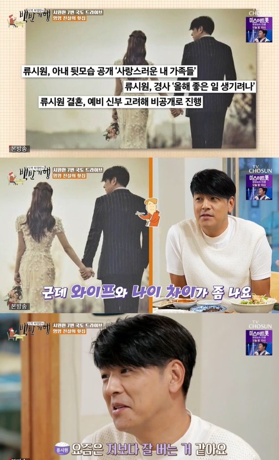 류시원은 "정식으로 밝힌 적이 없다. 좋은 사람이라 조심스럽게 만나다보니 아내에게 피해를 주지 않으려고 했다. 그랬더니 2살 연하, 6살 연하 이렇게 잘못 알려지더라"며 나이를 숨긴 이유와 이제야 밝히는 이유를 덧붙였다.