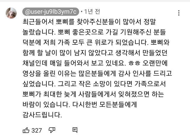 주인이 채널 만든 이유는 노견이지만 함께할 날을 기억하려고 했다고 함.