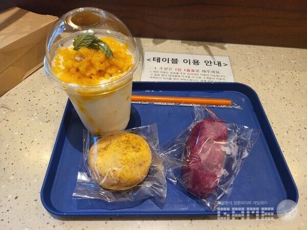 메뉴는 엘리시아의 컨셉으로 총 4개가 준비되어 있었는데, 기자는 망고코코넛 큐브 블렌디드 세트를 주문했다. 평소 달콤커피의 콜라보 메뉴들의 단 맛이 많이 강해서 기자의 혀를 아리게 만들었는데, 놀랍게도 이번 메뉴에서는 강한 단 맛을 느끼지 못해 맛있게 마실 수 있었다.