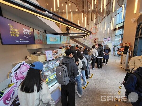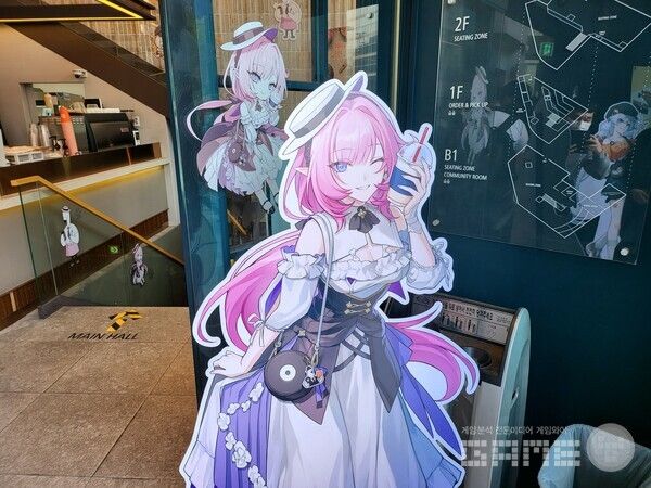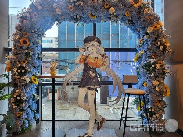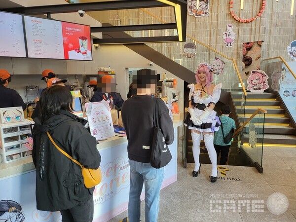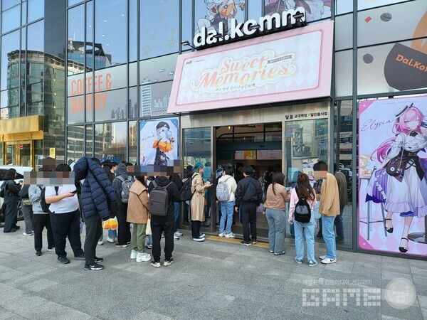 기자는 아슬아슬하게 4월 5일 오후 3시 30분에 예약에 성공해 카페를 방문했는데, 달콤커피 매장 입구에서부터 키아나와 엘리시아의 그림을 시작으로 입장하기 위해 이용자들이 대기하고 있는 모습을 볼 수 있었다.
