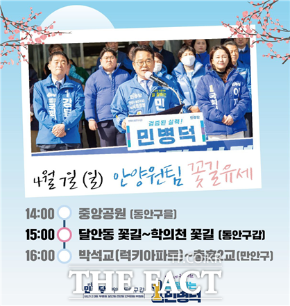 이어 동안구갑 민병덕 후보 지역구인 '달안동~학의천 꽃길'을 거쳐, 강득구 후보 지역구인 만안구의 '충훈부 꽃길'까지 유세를 이어갈 예정이다.