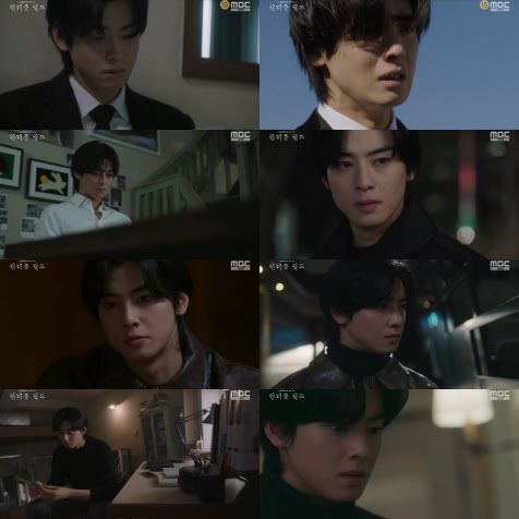 6일 방송된 MBC 금토드라마 ‘원더풀 월드’에서 부모님의 죽음에 대한 진실을 파헤치기 위해 스스로 거친 삶을 살아가는 ‘권선율’(차은우 분)은 엄마 김은민(강명주 분)의 장례를 치르고, 아버지 권지웅(오만석 분)의 실체를 알고 허탈해했다. 그는 은수현(김남주 분)을 향한 복수로만 살아왔으나 사실은 같은 피해자였다는 사실에 “평범하게 살고 싶었어. 좋은 아들이고 싶었고, 나한테 남은 건 은수현 당신에 대한 복수심뿐이었는데, 나 어떻게 해야 돼?”라고 자책하며 혼란스러운 감정을 가감 없이 드러냈다.