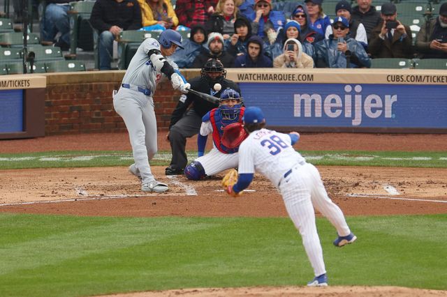 경기 초반만 해도 방망이가 좀처럼 달아오르지 못했다. 다저스 타선은 컵스의 일본인 선발 투수 이마나가 쇼타에게 꽁꽁 묶였다. 오타니 역시 1회 첫 타석에서 9구까지 가는 풀카운트 승부 끝에 헛스윙 삼진에 그쳤다. 3회 초 재대결했으나 역시 3루수 뜬공에 그쳤다.