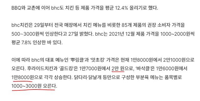 작년부터 치킨값 인상되고 거진 2만원 넘는듯.. ㄷㄷ