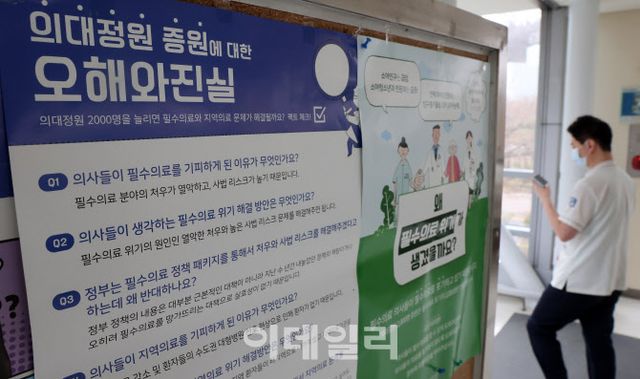 [이데일리 방인권 기자] 서울 시내 대학 병원에 대한의사협회 비상대책위원회가 배포한 의대정원 증원에 대한 오해와 진실, 필수의료 위기 국민 호소문이 붙어 있다.