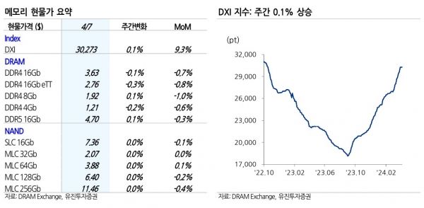 유진 리서치는 2024년 전세계 반도체 시장 규모가 지난해 대비 약 1,100억 달러 늘어난 6,369억 달러(+21%)에 달할 것으로 예상하고 있음. 그런데, 증가분 중 GPU가 약 310억 달러, 메모리가 약 620억 달러를 차지할 것으로 보임. 따라서, 올해 전세계 반도체 시장의 성장분 중 GPU + 메모리가 차지하는 비중은 85%에 이를 전망.