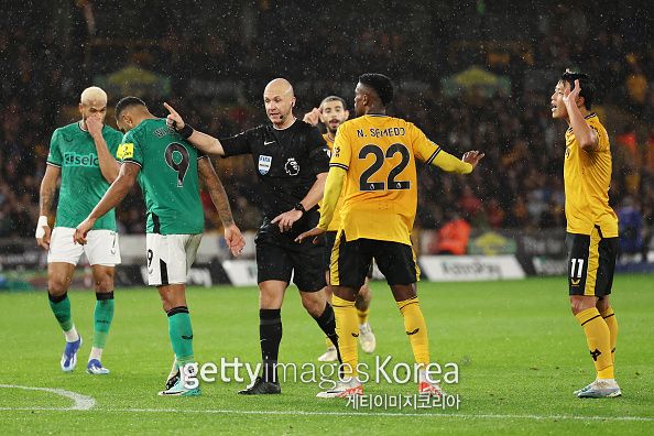 지난해엔 황희찬도 억울한 판정의 희생양이 됐다. 바로 지난해 10월 울버햄프턴과 뉴캐슬의 경기에서였다. 당시 황희찬은 팀이 1-1로 팽팽한 흐름을 이어간 전반 종료 직전, 수비 진영에서 공을 걷어냈다. 그런데 이 과정에서 황희찬의 발이 뉴캐슬 파비안 셰어와 충돌한 것처럼 보였다. 이를 두고 테일러 주심은 페널티킥(PK)을 선언했다. 그런데 중계화면에선 두 선수의 충돌 장면이 잡히지 않아 물음표를 낳았다. 비디오판독(VAR)이 이어졌음에도, 원심은 유지됐다. 팀은 황희찬의 동점 골에 힘입어 2-2로 비겼다.