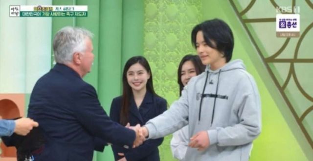 9일 오전 방송된 KBS1 '아침마당'에서는 2002 월드컵 신화를 쓴 거스 히딩크 전 감독이 출연했다. 화요초대석으로 꾸려진 이날 방송에는 히딩크 전 감독과 함께 김남일, 김보민 부부와 그의 아들 김서우 군이 등장해 얼굴을 비췄다.